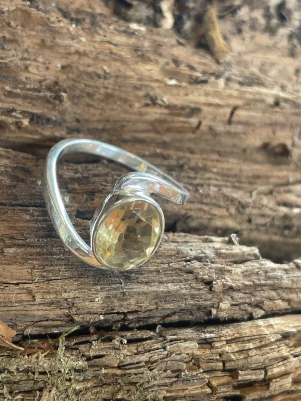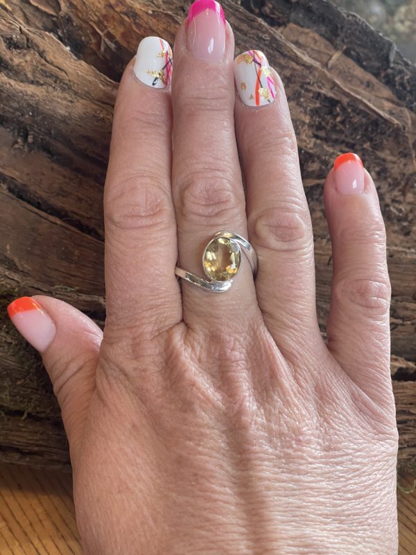 Cette bague en argent et citrine naturelle facettée est unique de par la beauté et la qualité de cette pierre naturelle mais également par sa forme originale de son montage et son côté facetté.