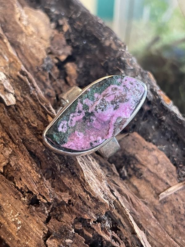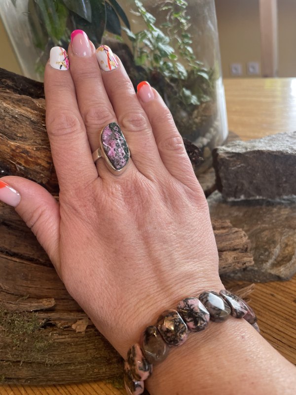 Cette bague en rhodonite brute est unique de par la beauté et la qualité de cette pierre naturelle mais également par sa forme originale et son côté brute atypique.