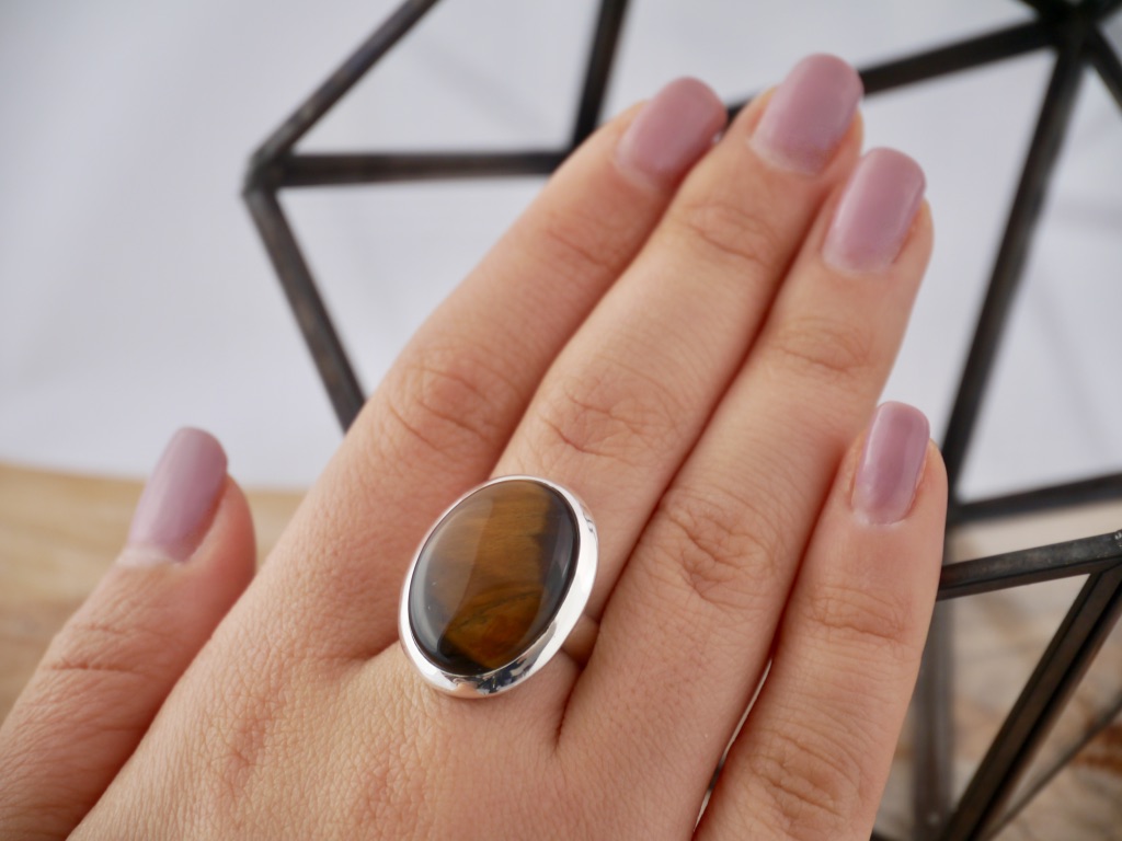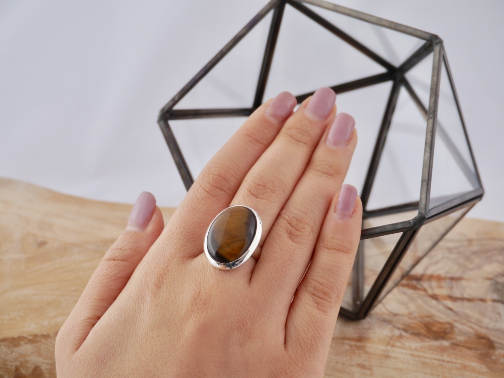 Bague Argent Œil de Tigre Ovale ronde