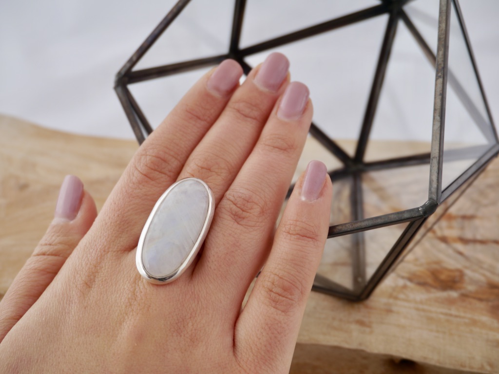 Bague Argent Pierre de Lune Ovale Allongé