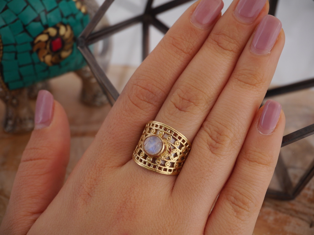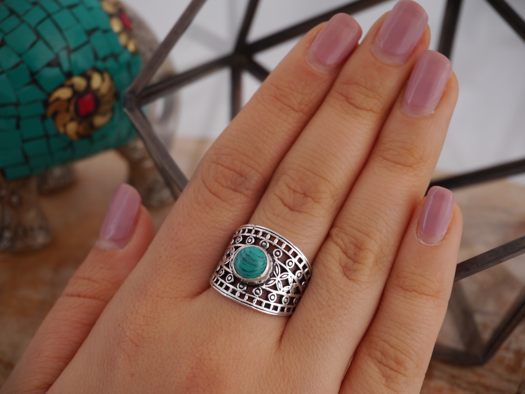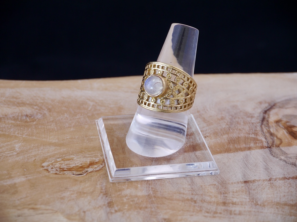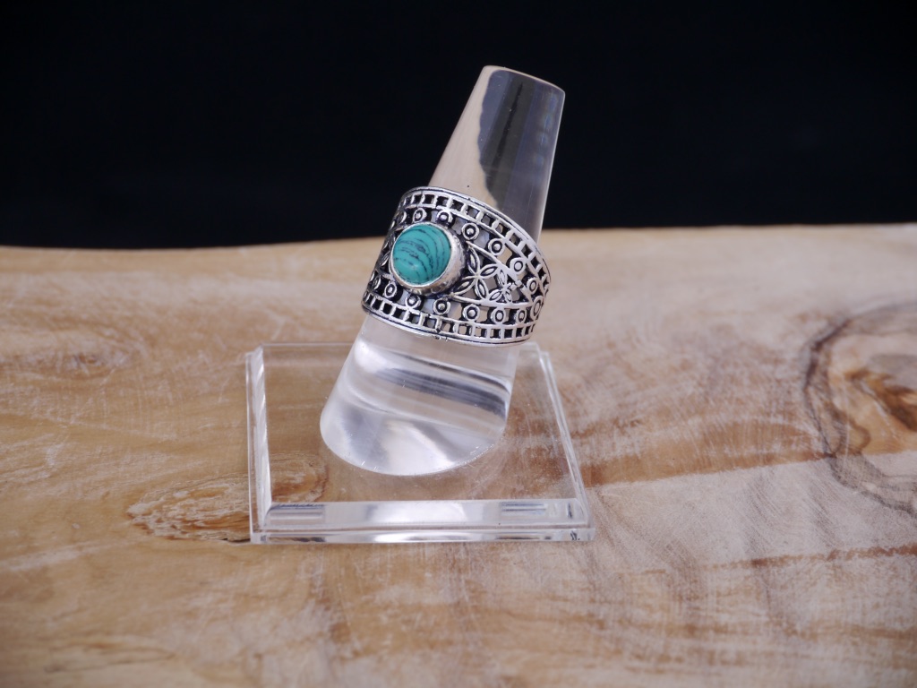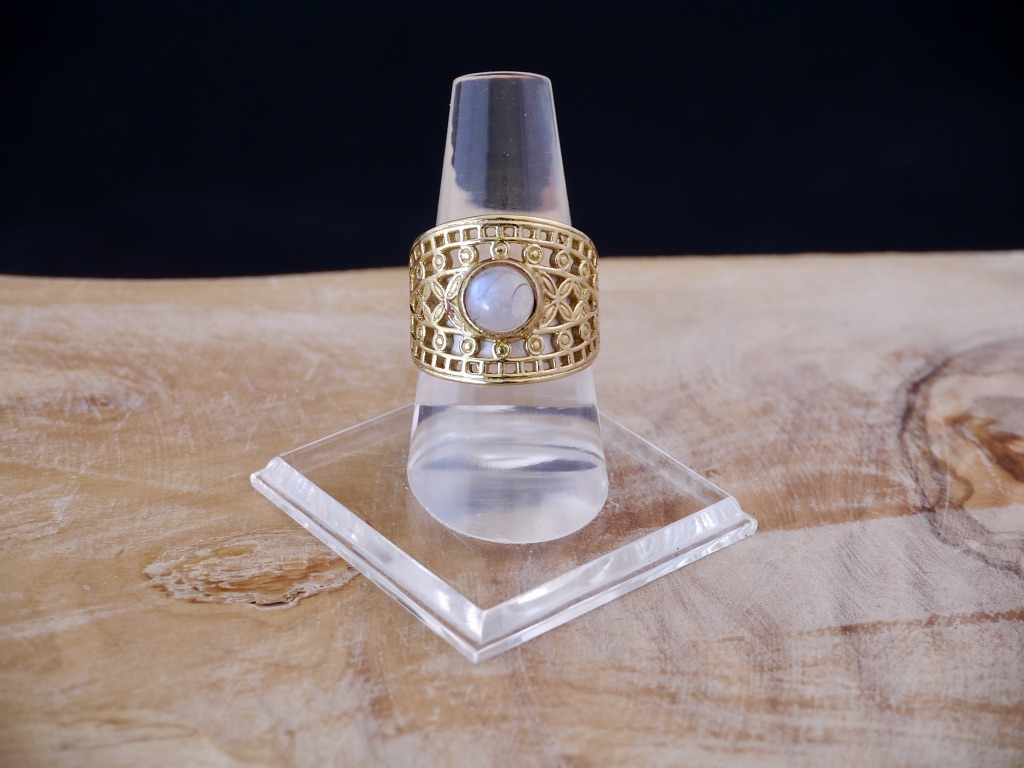 Vous apprécierez ce bijou fabriqué dans un alliage de minerais naturels à base de laiton doré ou argenté, orné d’une pierre (pierre de lune, oeil de tigre ou turquoise).