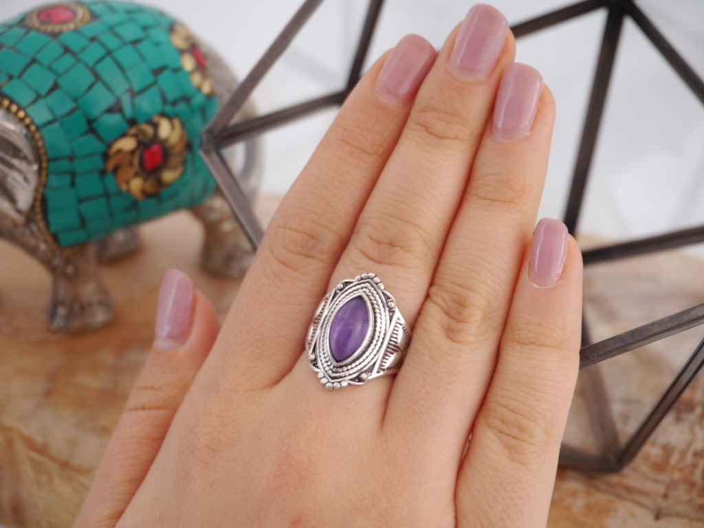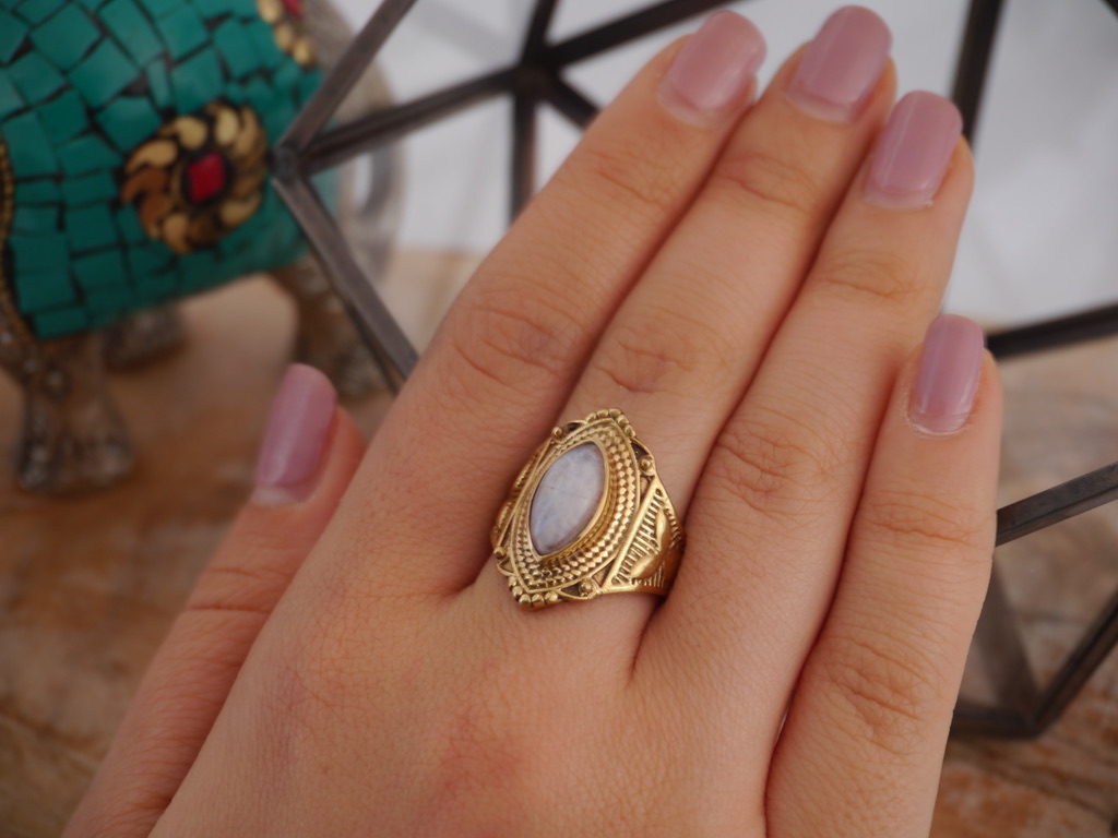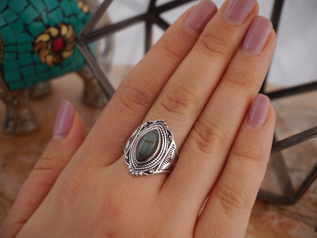 Vous apprécierez ce bijou fabriqué dans un alliage de minerais naturels à base de laiton doré ou argenté, orné d’une pierre (améthyste, labradorite, pierre de lune ou turquoise).