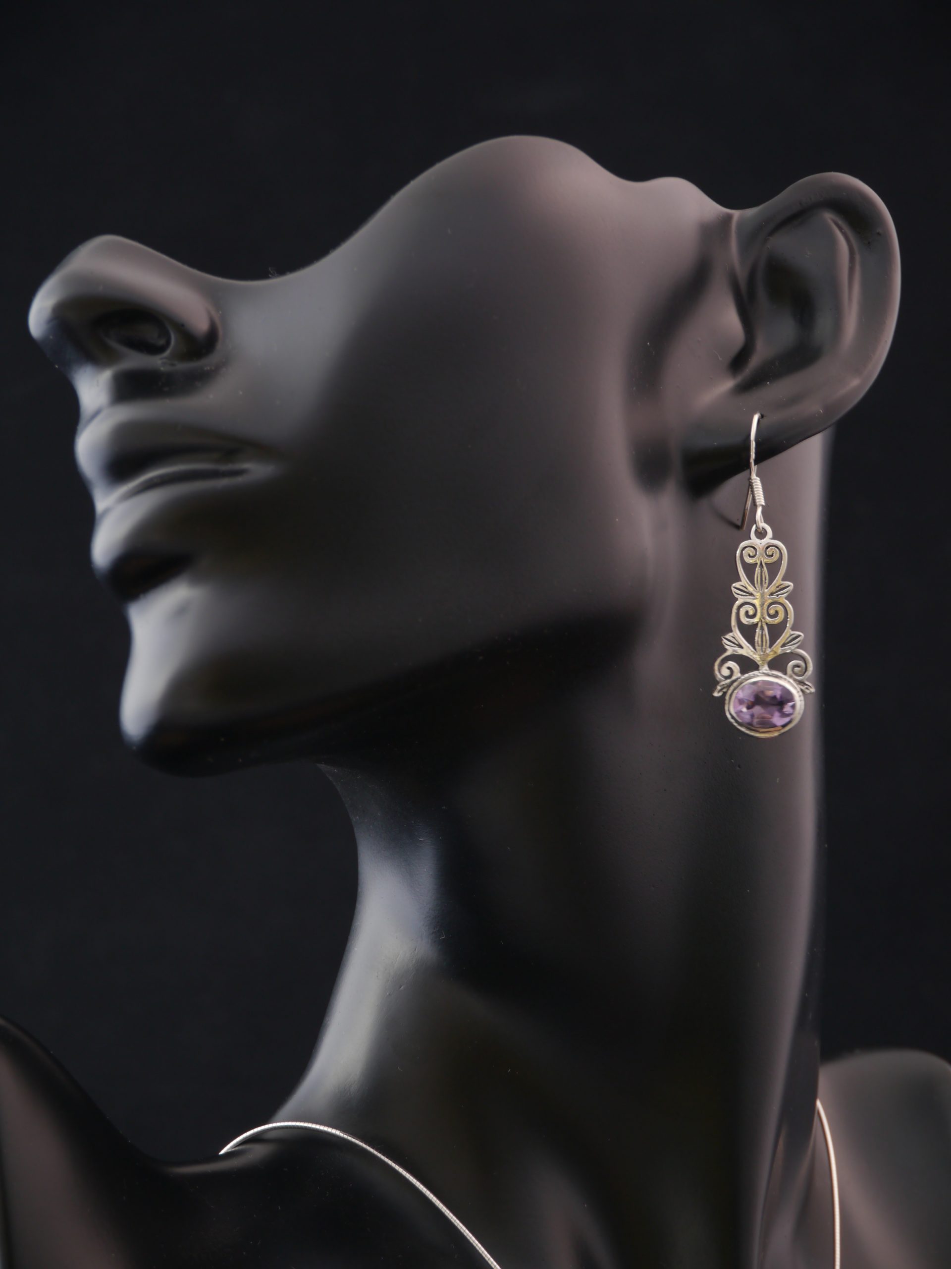 Vous apprécierez ces boucles d’oreilles en argent 925 pour leur travail sur l’argent et la qualité des pierres semi précieuses en Améthyste qui les composent.