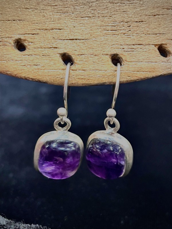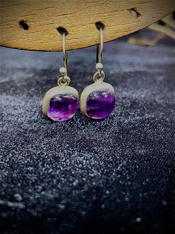 L’améthyste, pierre de sérénité et de protection intérieure, apporte ici sa profondeur lumineuse à un design épuré. Elles restent légères et agréables à porter. Leur format habille parfaitement le visage sans alourdir le port.