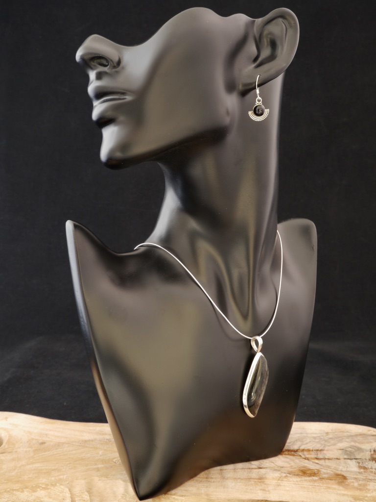 Vous apprécierez ces boucles d’oreilles en argent 925 pour leur forme qui rappelle la civilisation maya et la qualité des pierres semi précieuses en Onyx qui les composent.