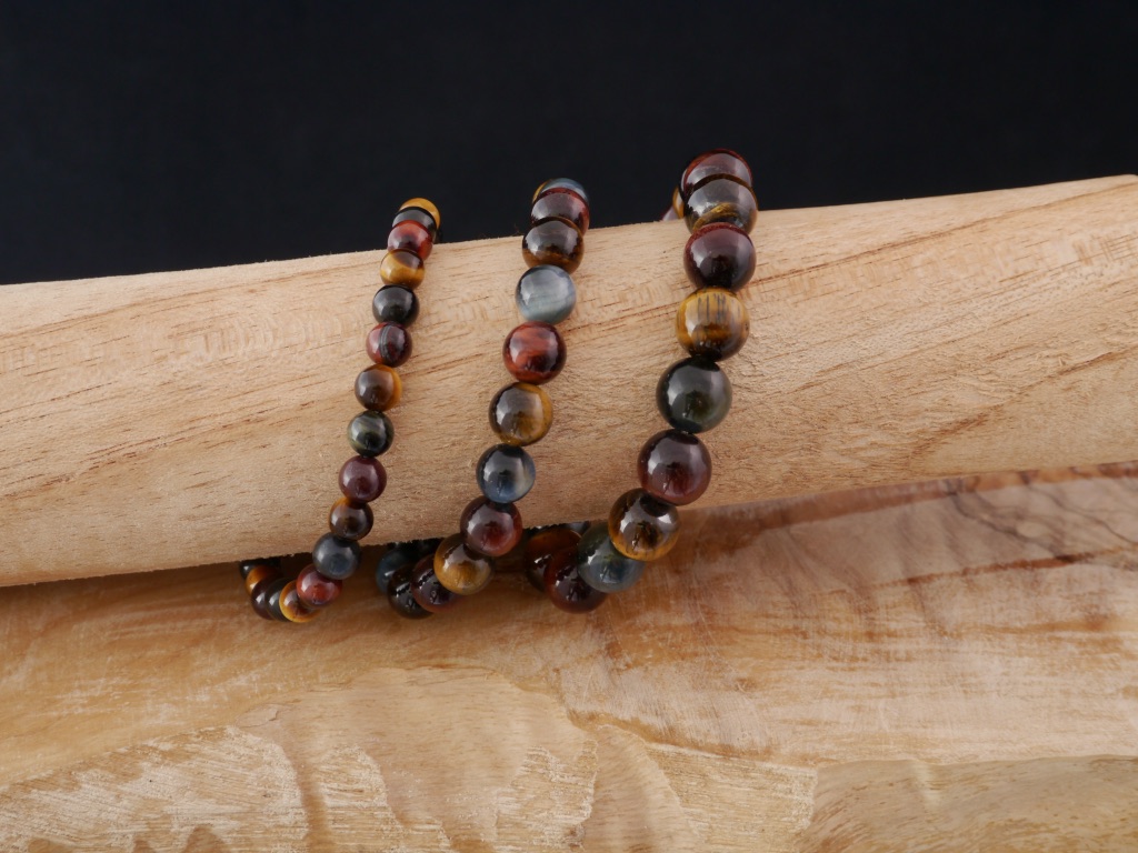 Bracelet perles Protection (Oeil de Tigre, Faucon, Taureau)